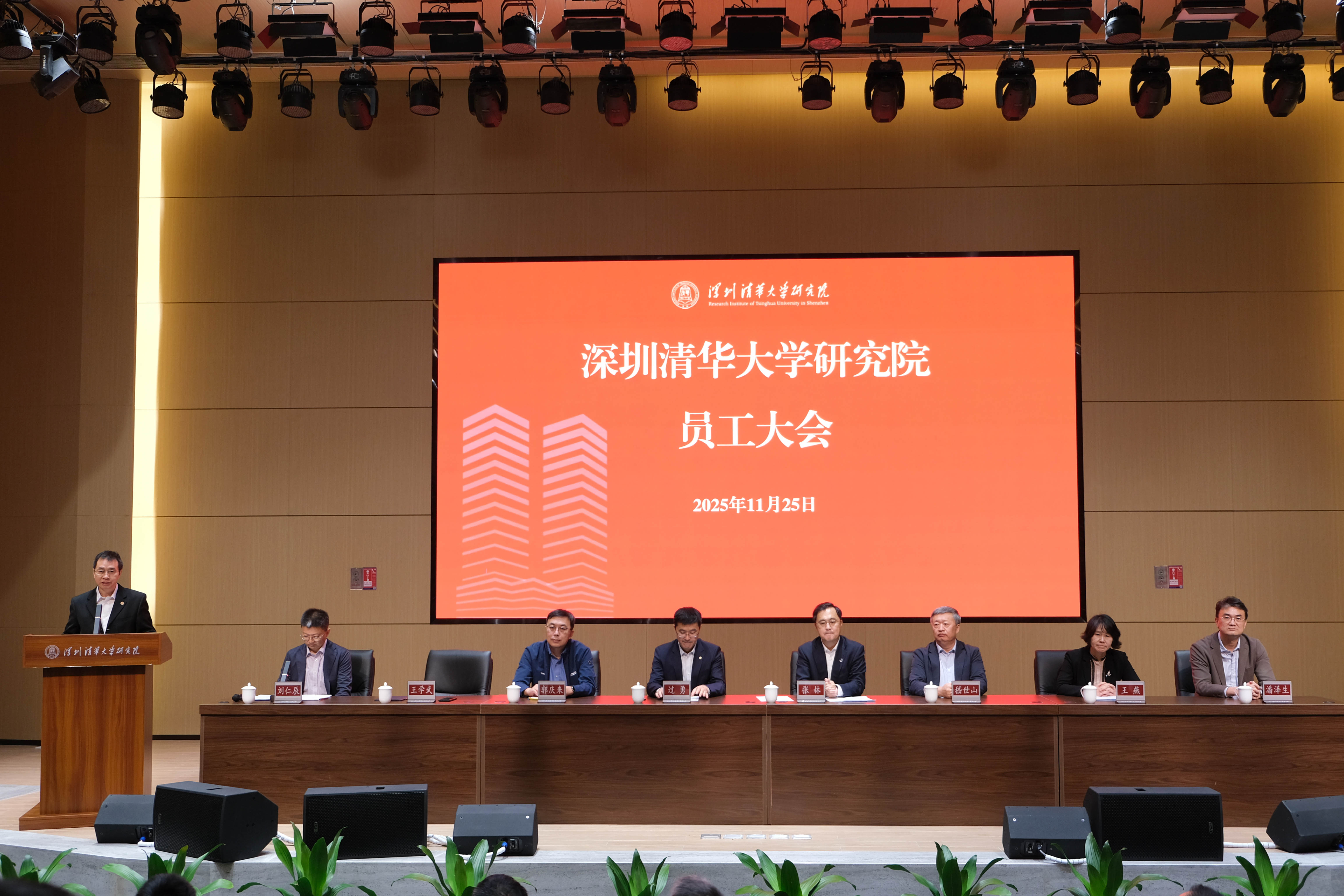 2025年11月25日,深圳清华大学研究院员工大会在研究院新大楼报告厅举行。清华大学党委副书记过勇,深圳市委科创办主任,市科技创新局党组书记、局长张林出席会议并讲话,研究院院长王学武、原院长嵇世山出席会议并发言,清华大学国内合作处处长王燕,清华大学党校办公室主任、党委组织部副部长郭庆来,研究院常务副院长刘仁辰、副院长潘泽生参加会议。会议由研究院常务副院长刘仁辰主持。